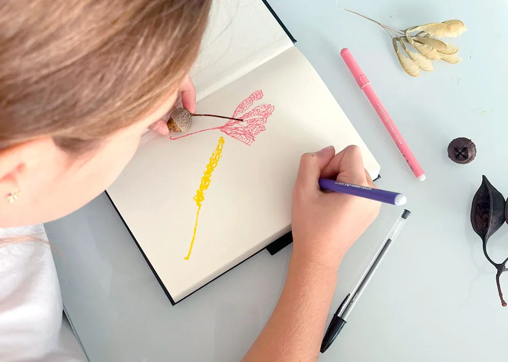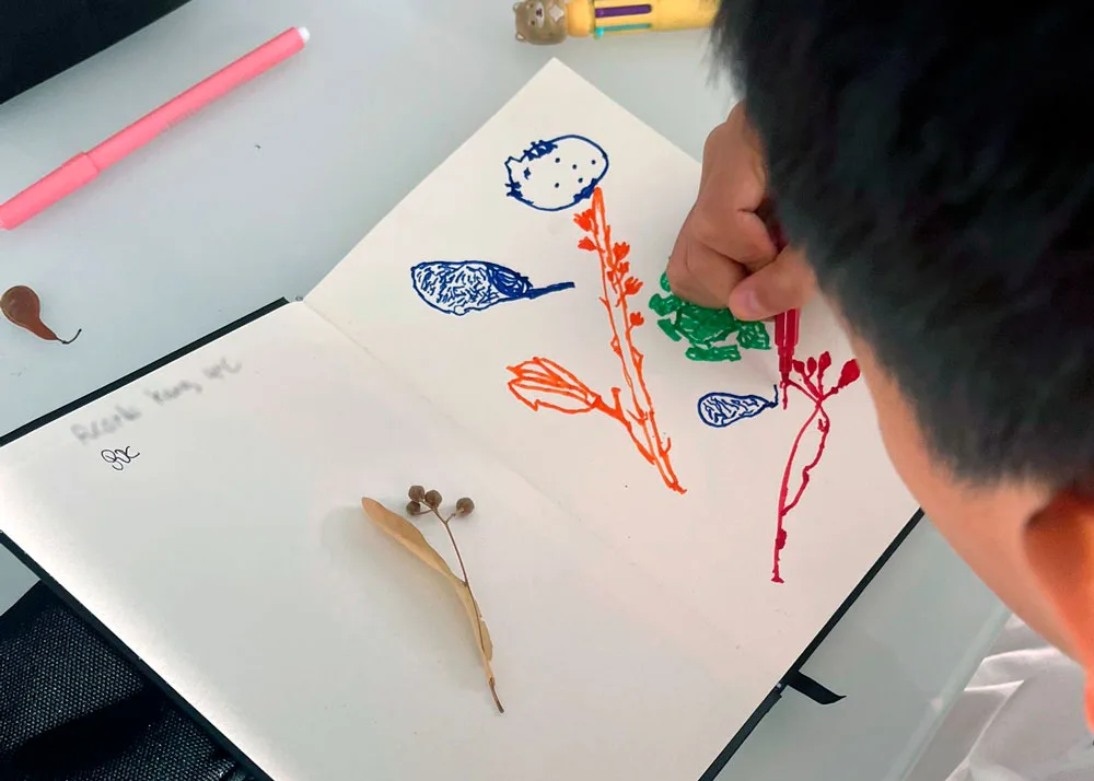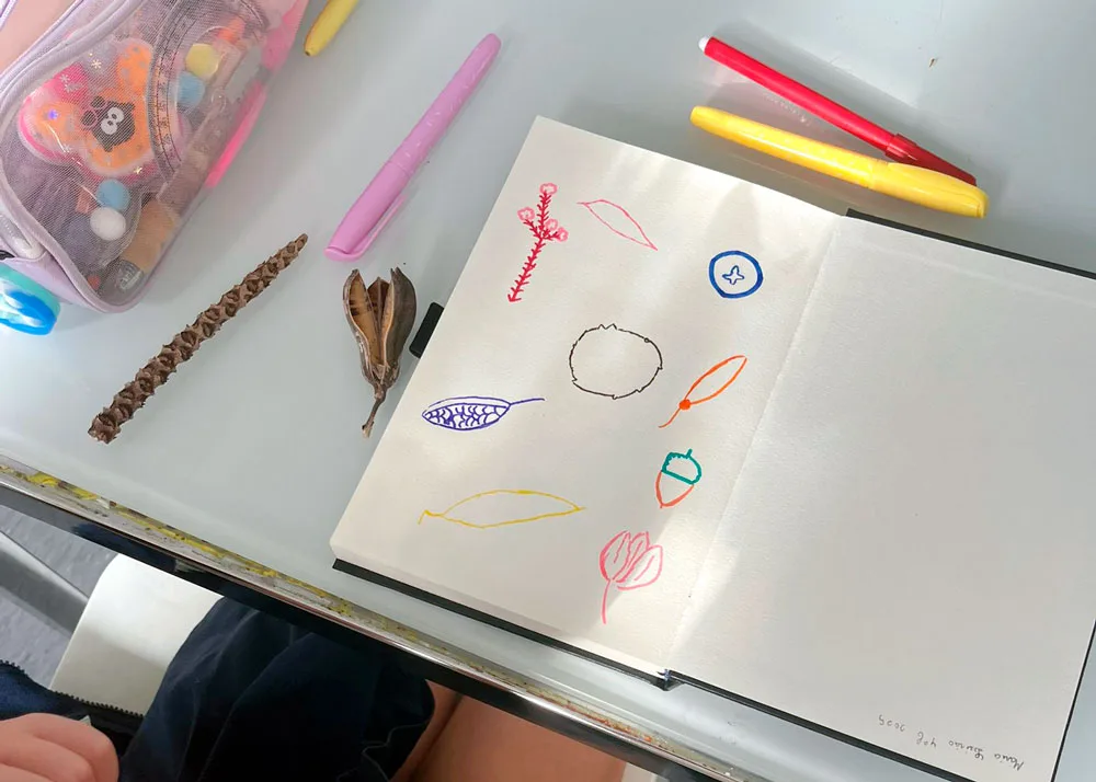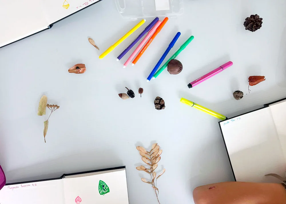Em seguida, a partir de uma coleção de sementes, vamos observar as formas particulares da natureza e registá-las nos nossos cadernos. Afinal, com quantas linhas desenhamos uma semente?